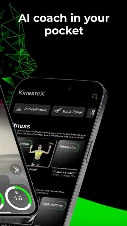 KinesteX counts reps, and provides real-time graphical and voice feedback about your physical condition, utilizing the fastest pose-tracking AI