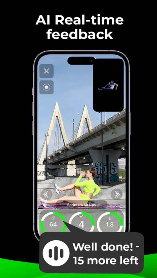 We use your phone’s front camera to analyze your movements in real-time and provide feedback accordingly. We do not record your movements. Video data from your camera is fed directly to our AI models that use it to estimate your pose and provide feedback on your movements.