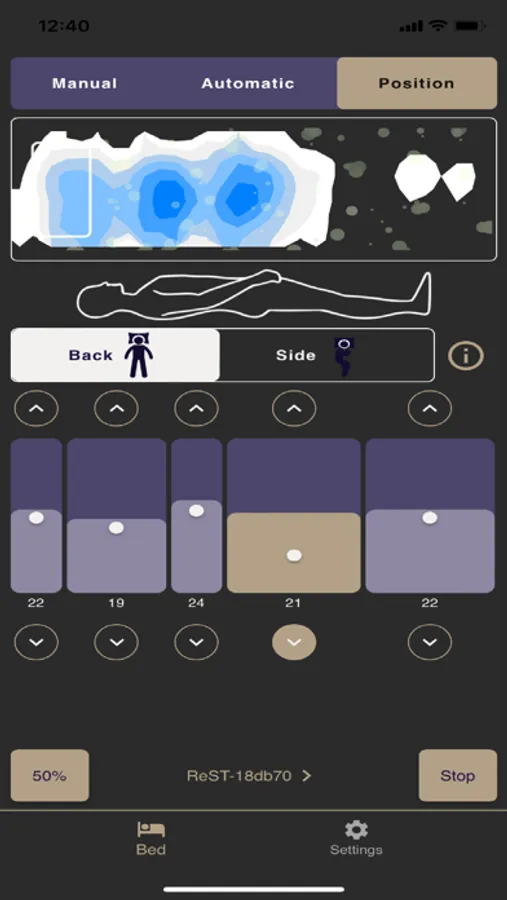 Automatic and Position mode utilize the smart sensor inside the mattress to detect real-time body pressure and triggers automatic and targeted firmness adjustments.