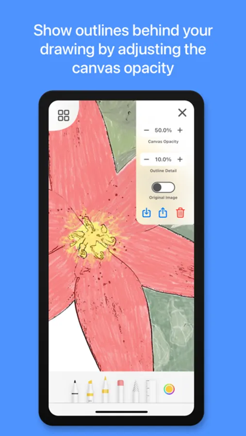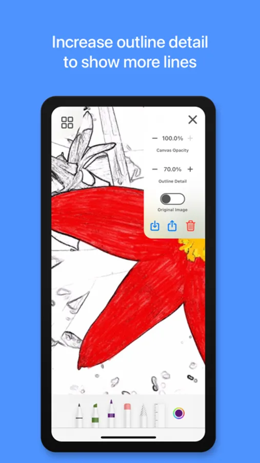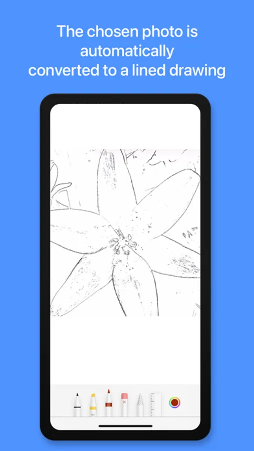 Choose from photos in your own photo library. Your chosen pictures will automatically convert into a lined drawing for you to bring to life.
