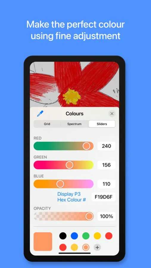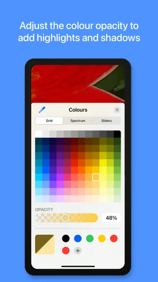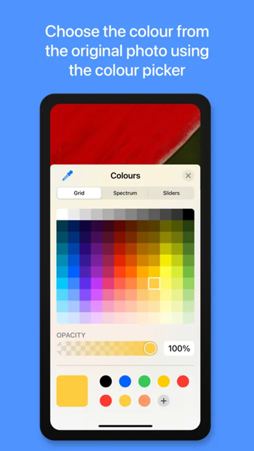 • The original photo can be selected to appear in the background to help you see more detail and choose colours, with the help of our colour picker.