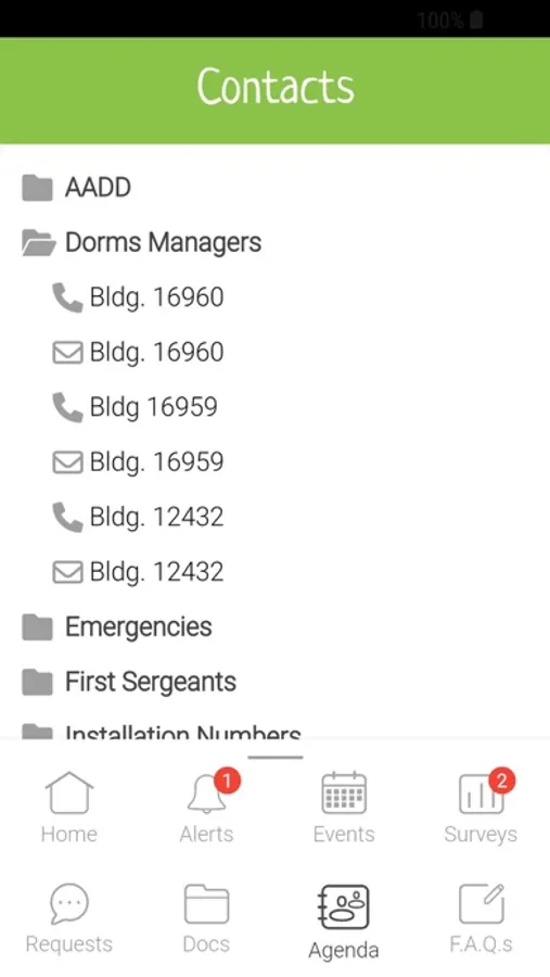 Mobile application for campus residents (military dorms or university campus) meant to be used within the DormsNet environment. Easily receive emergency alerts and events notifications, send requests to facility managers and consult phone directories, forms, how-to videos and any other document made available by the facility management through a back-end application.