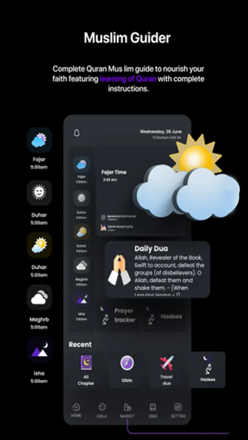 A complete Muslim guide to nourish your faith featuring learning of Quran with complete instructions of all Prayers, Hadith, Qibla direction, Mosque locator, Duas, Tasbih, Asma ul husna, Ruqyah Shariah, Wudu and social platform which are splendidly categorized in a simple form.