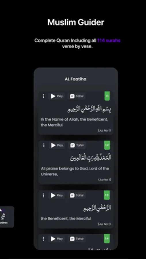 The most useful section that has all the Holy Quran in it. You can listen or read the Quran online or search any Surah directly to open it by its name. Listen to the Quran recitation in multiple Reciter’s voices. Muslim Guider app supports 43 different languages for Quran Translation from 111 scholars, and Quran Tafsir also in multiple languages from different authors.