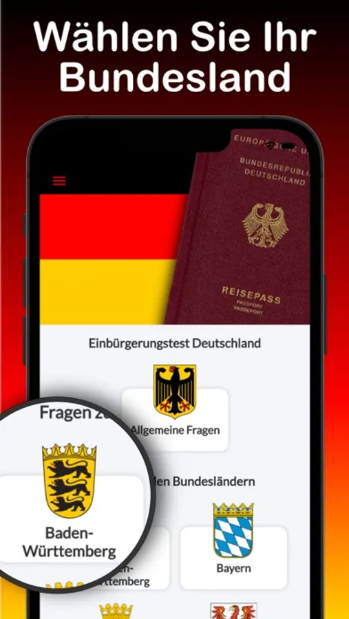 Mit dieser kostenlosen App zum Einbürgerungstest in Deutschland können Sie sich gezielt auf den Einbürgerungstest vorbereiten, damit Sie Ihren Deutschen Pass bald in den Händen halten!