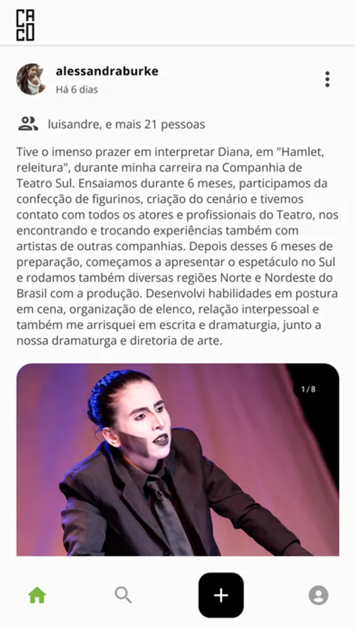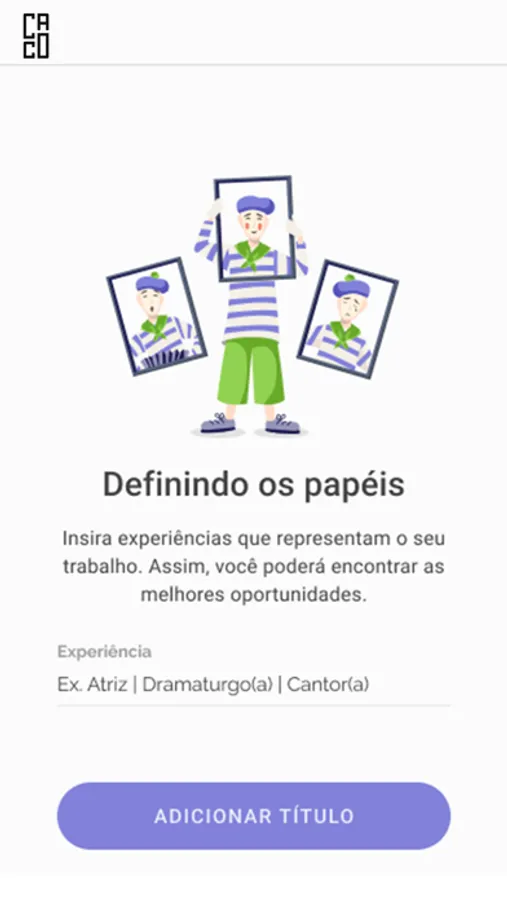 VITRINE: Mostre seu talento, suas vivências artísticas, espetáculos e cursos que participou. Divulgue sua experiência e seu estilo de trabalho com a ajuda da plataforma Caco.