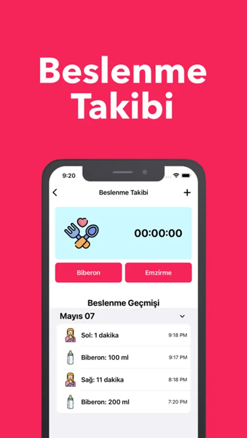 - Emzirme ve biberonla beslemenizi takip etmeye yardımcı olur