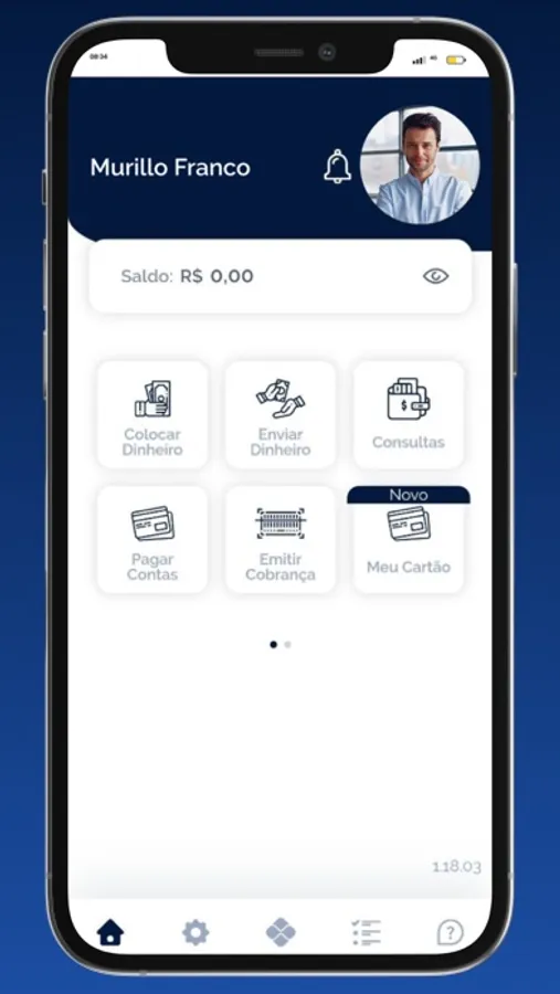 Ao criar a sua conta, você terá acesso a todos os serviços financeiros, tais como extrato, pagar contas, e cobrar alguém.