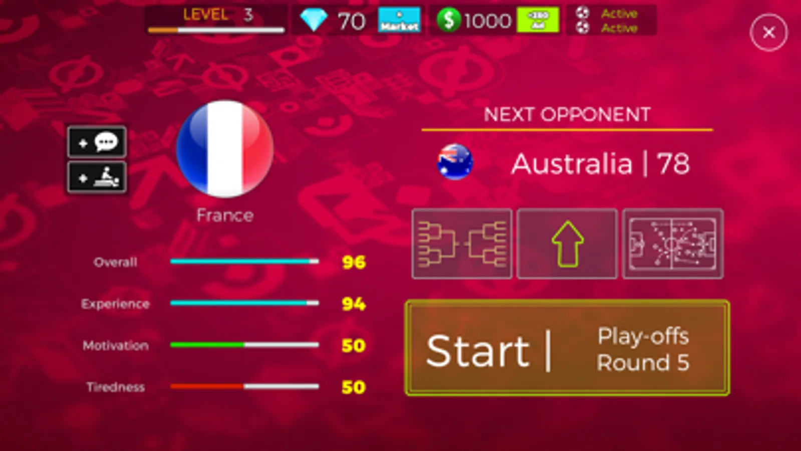 Choose and manage one of the national football teams of 38 countries participating in the current World Football Championship Cup in Qatar at 2022. Starting from the group stages and win the trophy that every country dreams of. Set your squad, your game plan. Keep your players fit and motivated. Guide your players on the sidelines in matches. Sometimes deal with the referee or the opponent.Keep your players in the match. Win the matches. Improve your manager.