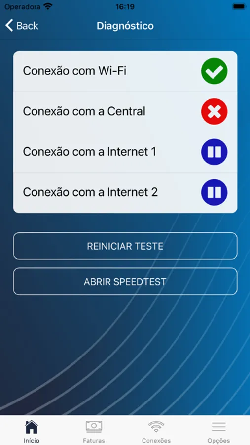 • Realização testes de conexão e velocidade;