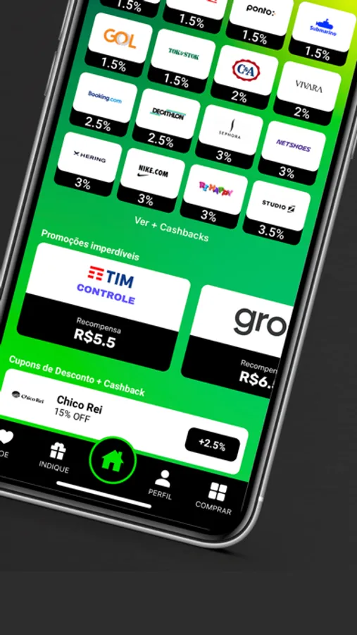 Agora você pode comprar tudo o que você precisa, na sua loja favorita e ainda acumula recompensas. Dinheiro de volta, descontos especiais e até frete grátis. Aqui não tem pegadinha, nem letrinhas: É Cashback de verdade para você fazer o que quiser.