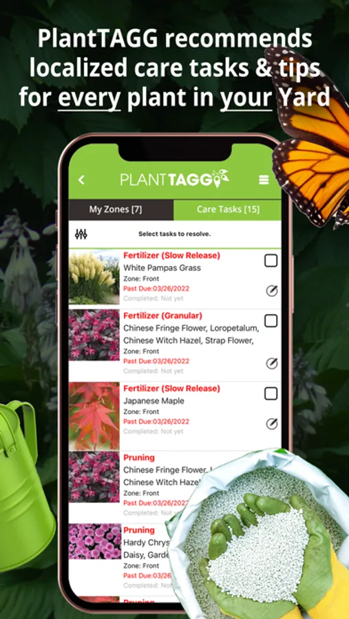 Want to know when and how to fertilize, prune and deal with pests and disease for each unique plant? PlantTAGG’s tasks and tips are crafted and curated by Master Gardeners and tailored for your specific yard location. As you use PlantTAGG's care tasks the system gets smarter. Want to add a custom scheduled care task for a specific plant - no problem.