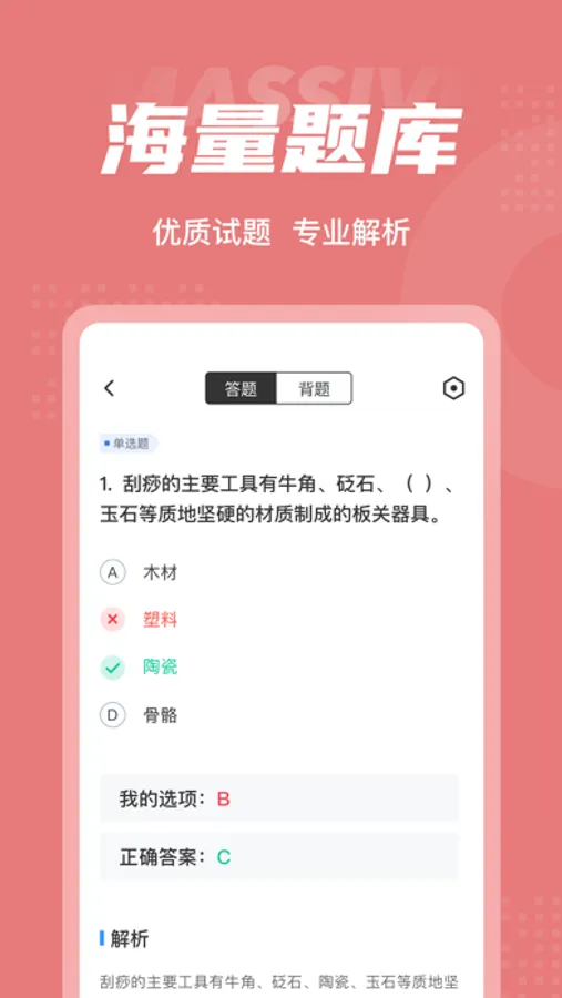 中医刮痧师考试聚题库是一款针对中医刮痧师考试的应用,主要功能特点包含:
