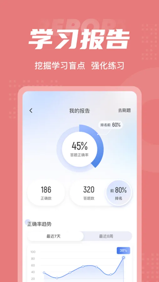 中医刮痧师题库内含考点练习,全国通用卷以及地区卷模拟练习,以及按照固定考试比重的随机式的抽题的真题考场,成绩单实时记录考试数据,一点一滴的反馈考生近期学习状态以及自我正确率的提升,大大的给予考生通过考试的信心。