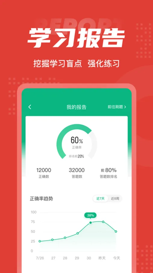 中医灸疗师题库内含考点练习,全国通用卷以及地区卷模拟练习,以及按照固定考试比重的随机式的抽题的真题考场,成绩单实时记录考试数据,一点一滴的反馈考生近期学习状态以及自我正确率的提升,大大的给予考生通过考试的信心。