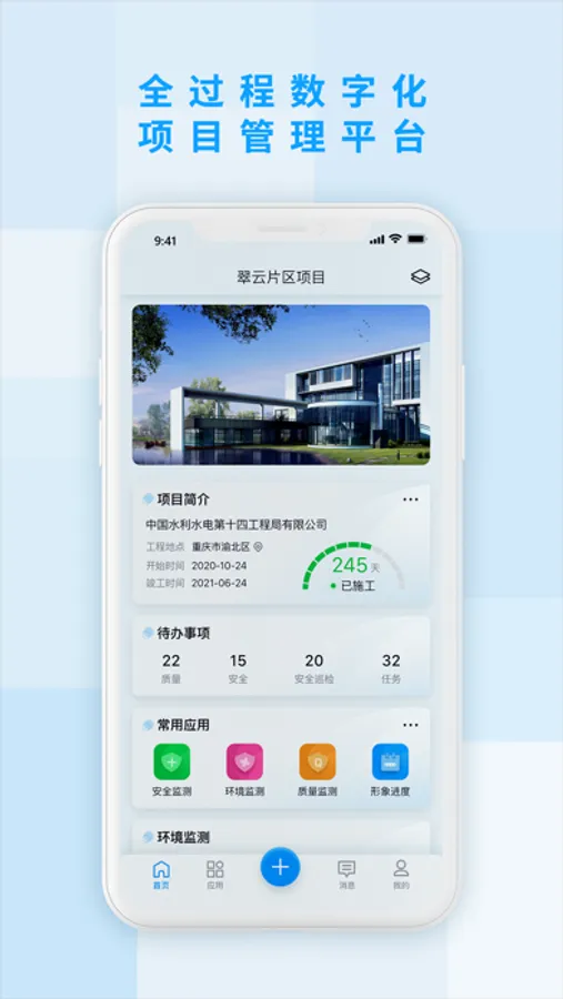 以物联网、移动互联网技术为基础,充分应用大数据、人工智能、边缘计算等信息技术,通过前端设备信息采集对接,实现对工程项目中的质量、安全、进度、成本控制、人员、车辆、设备等的智能化管控,将信息化技术、IOT技术,BIM技术、工程施工技术以及项目管理办法进行结合与集成,对项目成本、资料以及效率等等进行全方位管控,提升项目管理效能。