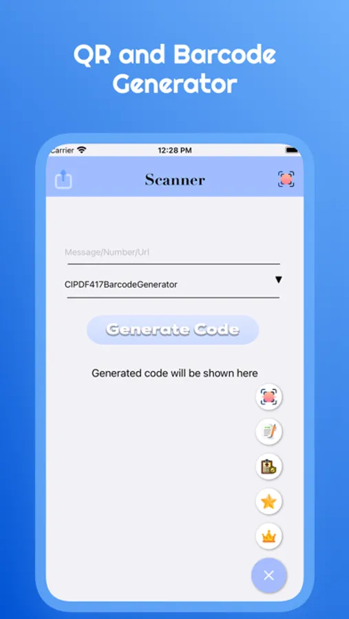 Besides QR Scanner and Barcode Reader also allows you to generate barcodes, create QR code easily, with categories: product code, image, text, URL, website, contact, phone, calendar , email, message, Wi-Fi, ...