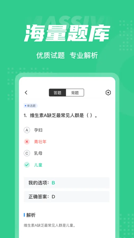 营养配餐师考试聚题库是一款针对营养配餐师考试的应用,主要功能特点包含: