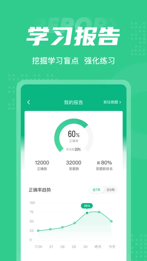 营养配餐师题库内含考点练习,全国通用卷以及地区卷模拟练习,以及按照固定考试比重的随机式的抽题的真题考场,成绩单实时记录考试数据,一点一滴的反馈考生近期学习状态以及自我正确率的提升,大大的给予考生通过考试的信心。