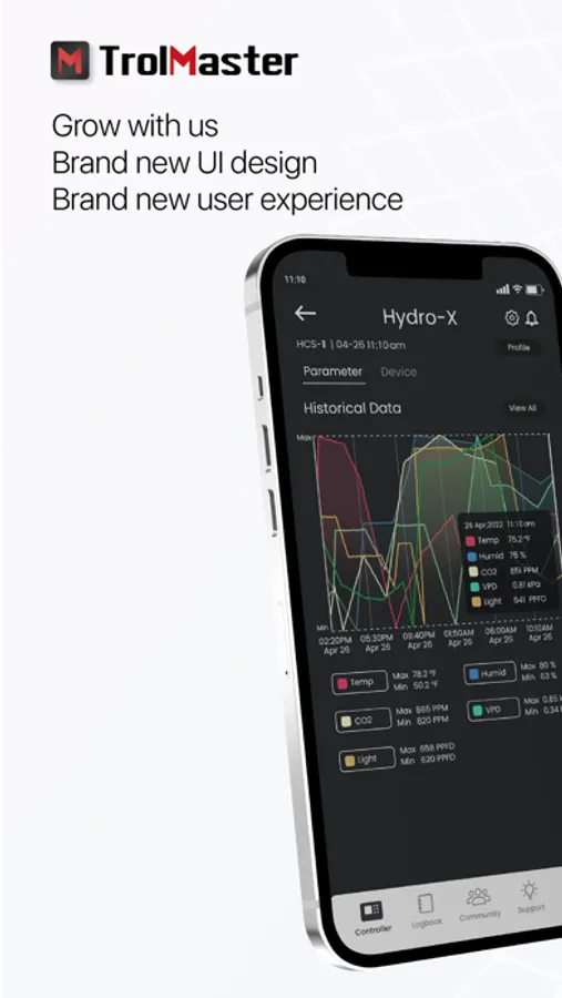 TM+ Pro offers you remote access and control of the TrolMaster control systems: Tent-X, Hydro-X,Hydro-X Pro,Hydro-X Plus, Aqua-X,Aqua-X Pro,Aqua-X Plus, Carbon-X and Hawkeye. The controllers and control systems provide the ultimate solution for horticulture automation, enabling you to monitor and control every aspect of your growth facilities anywhere, anytime.