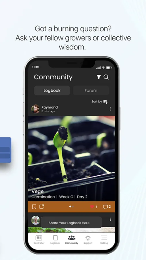 Forum: You can also share, like, comment, and post questions or any thoughts in Community, a place where growers can share ideas and grow together.
