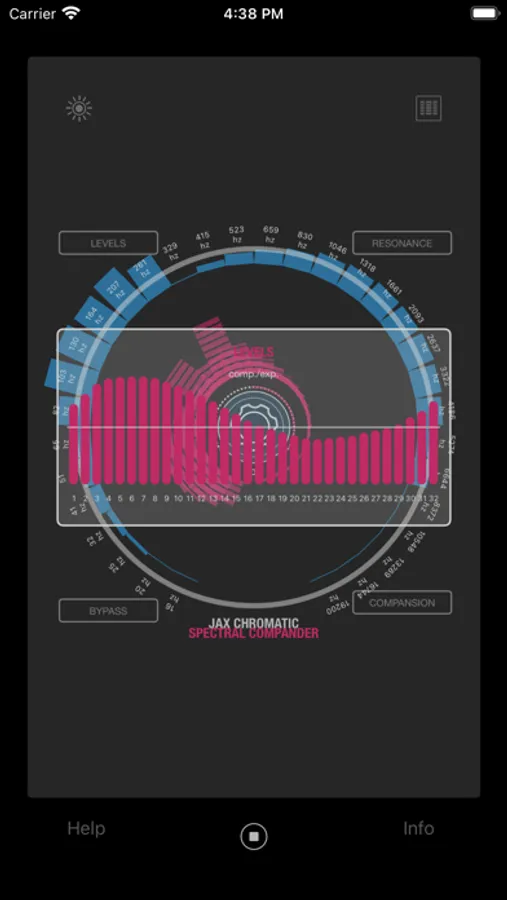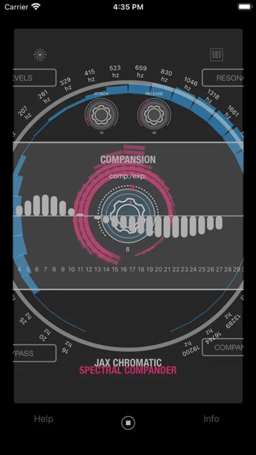 Usage, on the other side is extremely simple. All parameters are adjusted with ease by just moving fingers over the touchsreen. There is one macro knob for adjusting the compression/expansion amount. We spared out all complicated editing with numerical input and such, making JAX Chromatic Compander a joy to use.