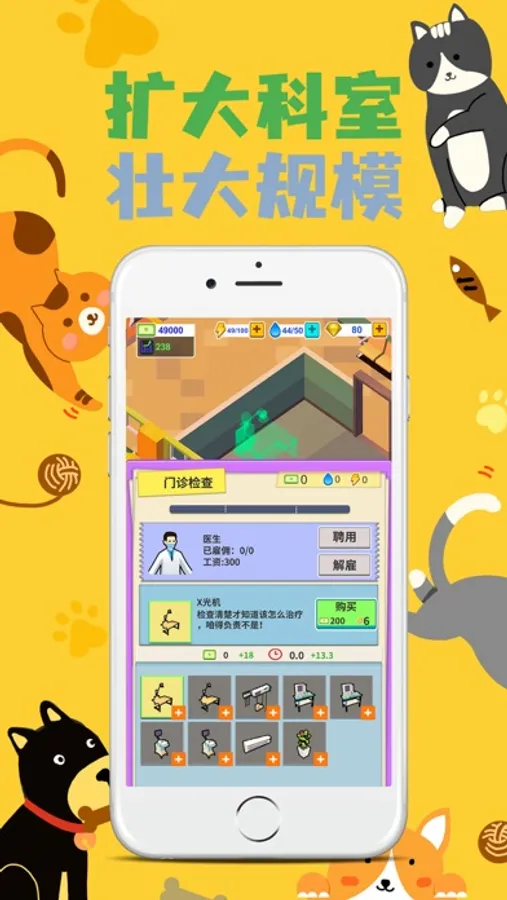 超有趣好玩的医院模拟器,真实还原宠物医院的经营和建设!你的任务就是,打造最完善的宠物医院!