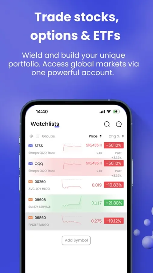 Trade international markets such as USA and Hong Kong stocks, options, and ETFs. Gain access to detailed insights and advanced analytical tools. Learn as you invest, where using professional tools can be intuitive and easy too.
