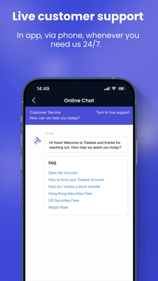 Tradesk empowers you to access global stock markets safely and seamlessly. Utilize best-in-class technology designed and built independently to trade USA and Hong Kong stocks, options and ETFs. No hidden costs and catches while you build your dream portfolio, using fastest real-time data and tools. First timers and professionals alike can interact and learn while exploring market movers and trending stocks, sharing ideas and hot news. Open an account today and join the community.