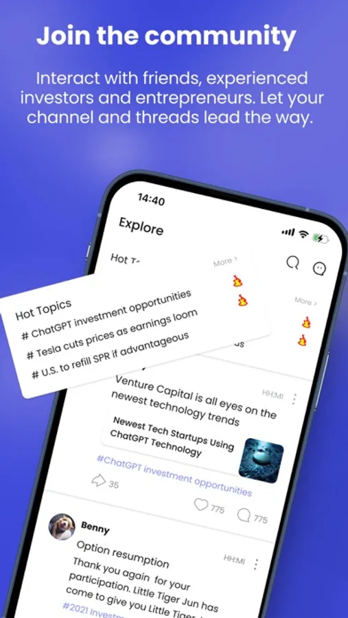 Stay on top of the global markets 24/7 with real-time financial and technology news alerts. Get first-hand information from peer investors since investing can be social as well.