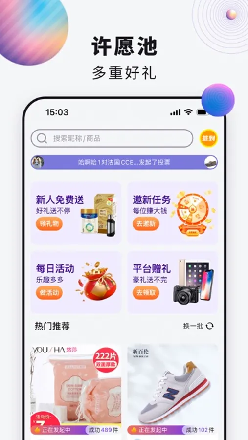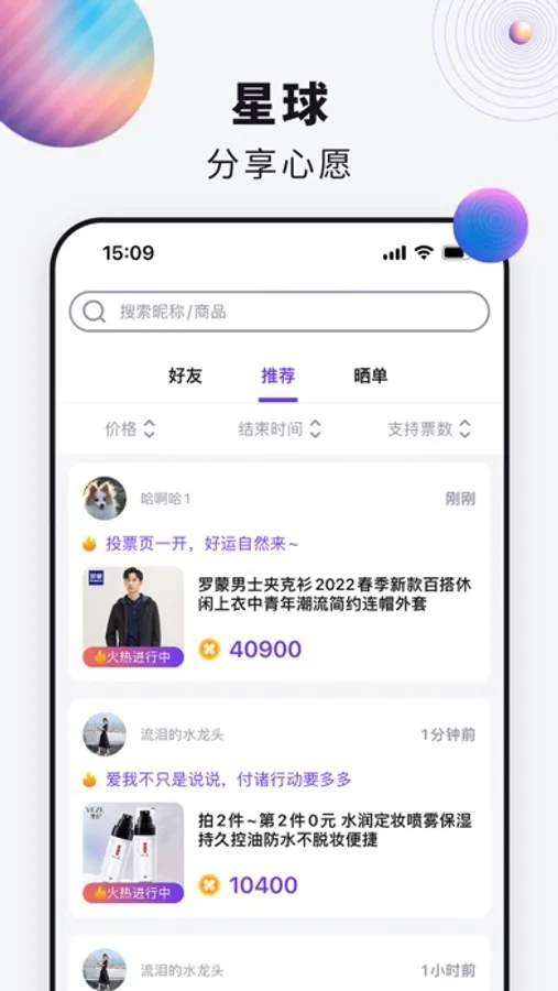 许愿星球,在这里,可以满足你的一切心愿。你可以发起任何商品,形成愿望,只需邀请三两好友,大礼便可拿到手。众多好友在此分享愿望,享受更具幸福感的生活,在这里,无论是口红包包还是高端智能手机,只要你想,便可拥有,快来许愿星球,和你的家人、朋友一起实现愿望吧!