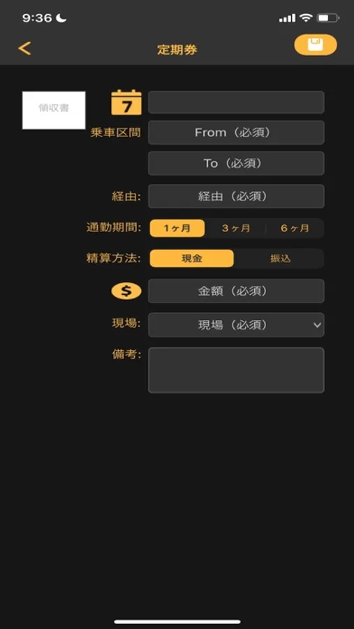 ・一般経費/交通費(電車、バス、タクシー)/定期券の申請ができます。
