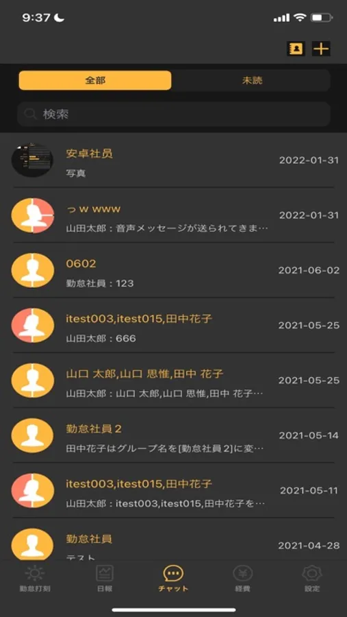 ・チャットにファイル(音声、位置情報、動画など)を添付して共有することができます。