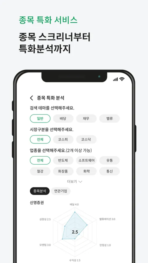 · 종목스크리너로 쉽고 빠르게 원하는 조건의 종목을 찾고, 상세한 분석까지