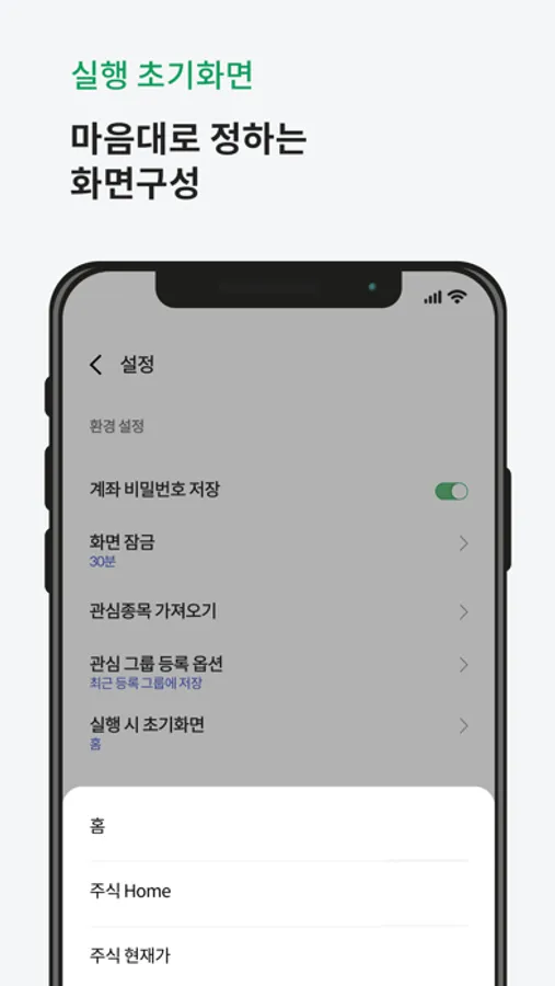 · 초기화면을 나의 계좌 배너, 주식 홈, 현재가, 관심종목, 메뉴에서 원하는 대로 정해보기