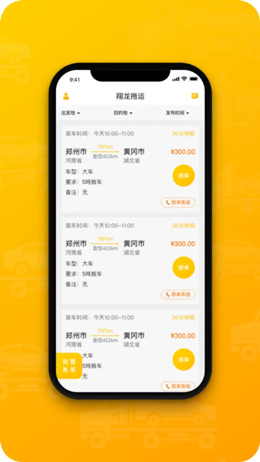 针对拖车司机们快速在线管理拖车的软件,司机们不仅可以利用这款软件及时的了解关于各种轿车托运的订单,而且针对自己可以完成的订单一键在线接单 ,让你找各种轿车托运的订单更加的简单,同时还可以实时在线分享你所在的位置,让客户更精准的了解轿车所在地。