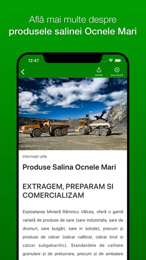 Salina Ocnele Mari App este aplicația oficială a Societății Naționale a Sării S.A. - SALROM.