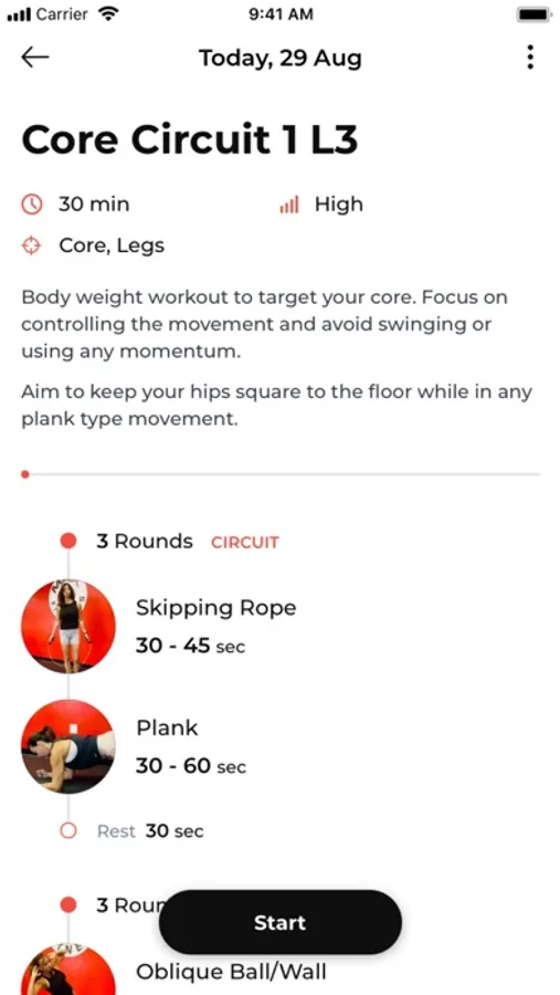 App also uses Apple Health to track energy burned and heart rate during a workout session, if an Apple Watch is used.