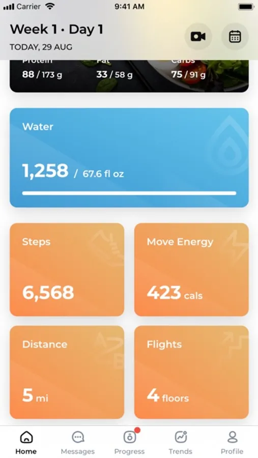 The app integrates with Apple Health to show your daily activity - distance, steps, active energy, and flights to help you better achieve your goals.