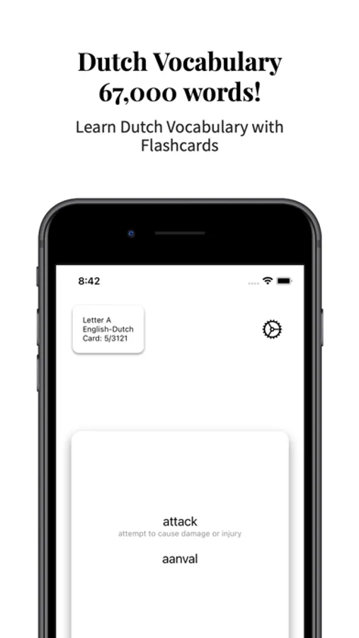 Learn or improve your Dutch vocabulary with this flashcard app. Try to guess the translation of the word or expression. A tap on the card and the translation appears under the word instantly. You wil learn Dutch vocabulary at your own pace. A swipe on the right or the left to show the next word.
