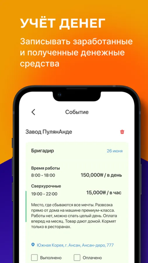 Jobbox - твой умный календарь для учёта времени и заработной платы! Никаких забот о потерянных записях о проектной работе, репетиторстве или подработке - теперь все события на одном месте. Управляй своим временем легко с помощью добавления и редактирования событий и меняй их статус, чтобы всегда быть в курсе. Используй шаблоны для повторяющихся событий и не теряй ни одного важного момента. С Jobbox, ты можешь также просматривать услуги в Южной Корее и добавлять профайл для получения предложений о работе. Отныне ты не пропустишь ни одного важного события в своей жизни и всегда будешь знать, сколько заработал за день, неделю или месяц. Держи свою жизнь под контролем с Jobbox!