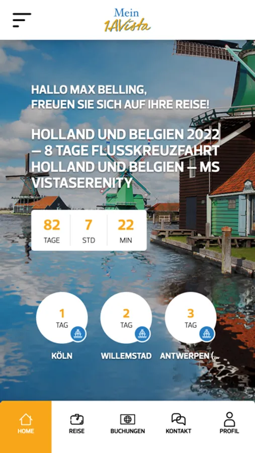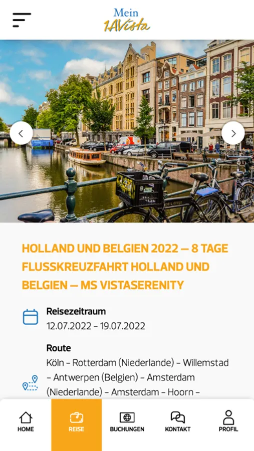 Mit der App Mein 1AVista haben Sie Ihre Flusskreuzfahrt immer im Blick: Alle Daten Ihrer Reise sind jederzeit abrufbar. Zudem können Sie sich über Ausflugsangebote und Ihre Reiseroute rund um die Uhr informieren. Weitere Funktionen, wie Einsicht in Ihre Einreisebestimmungen, Buchbarkeit der Ausflüge über die App und vieles mehr wird Ihnen zukünftig ebenfalls zur Verfügung stehen.