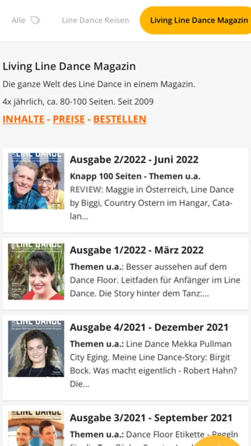 Das Living Line Dance Magazin erscheint 4x jährlich klassisch als Print-Magazin, Living Line Dance Travel führt internationale Line Dance Reisen durch.