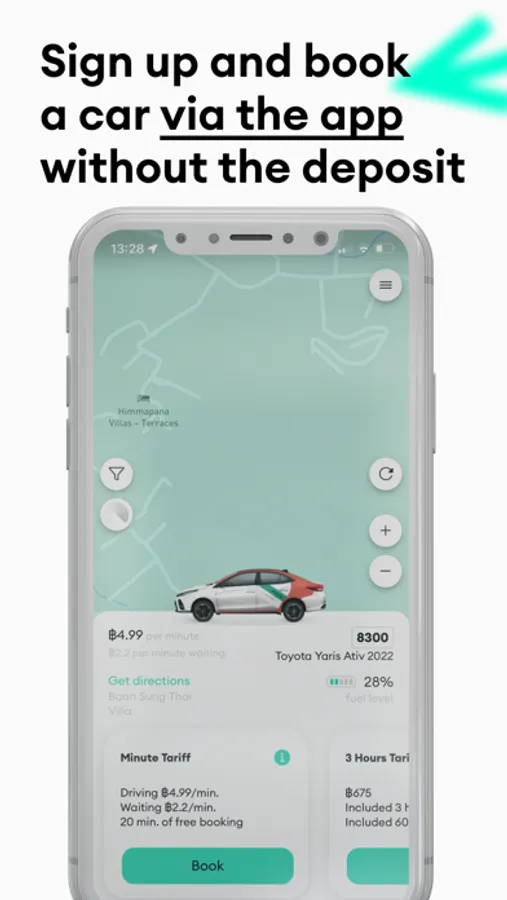 First carsharing in Phuket. Rent a car via the app. Pay by minutes or by days.