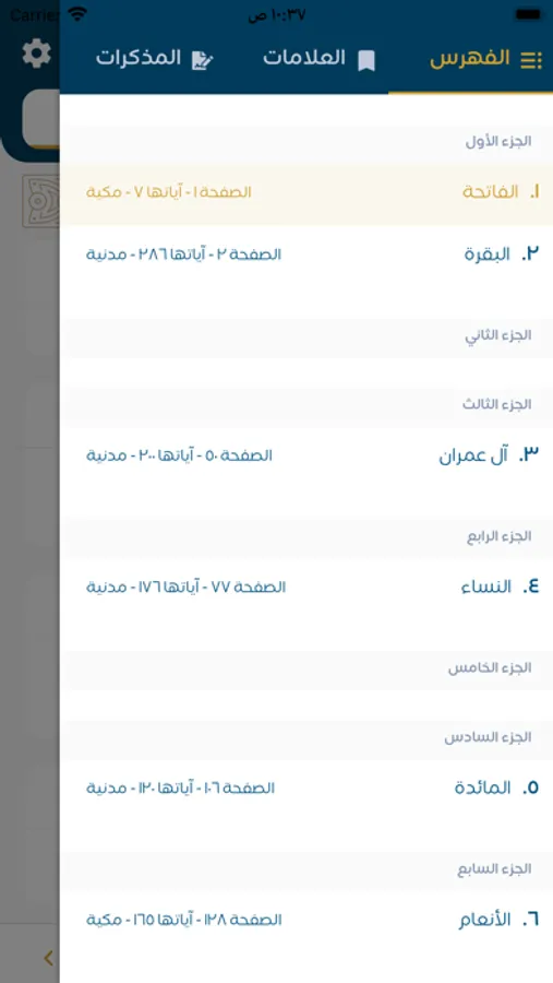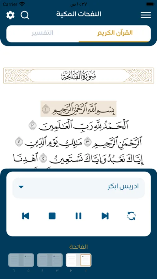 - أول تطبيق يحتوي على تلاوة للقارئ إدريس أبكر مُقسمة بالآيات.