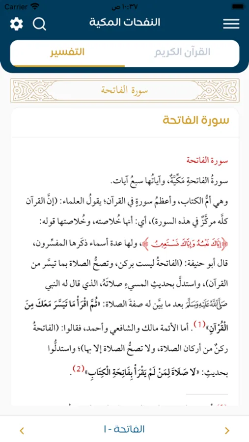 - أول تطبيق يحتوي على التفسير صوتي / نصي للقرآن الكريم.