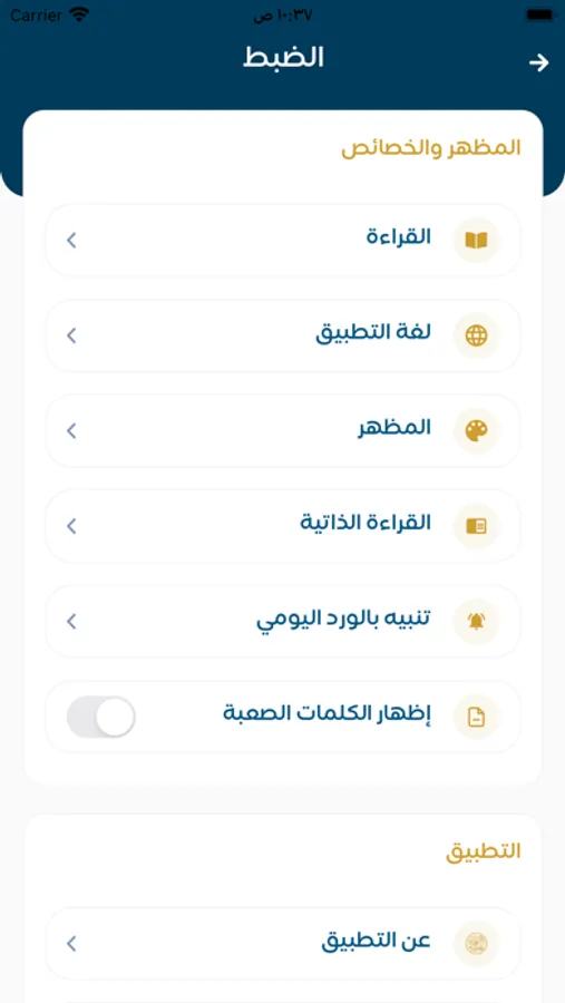 - إمكانية تحديد موعد الورد اليومي، ليتم إرسال تنبيه يومي للتذكير بموعد الورد.