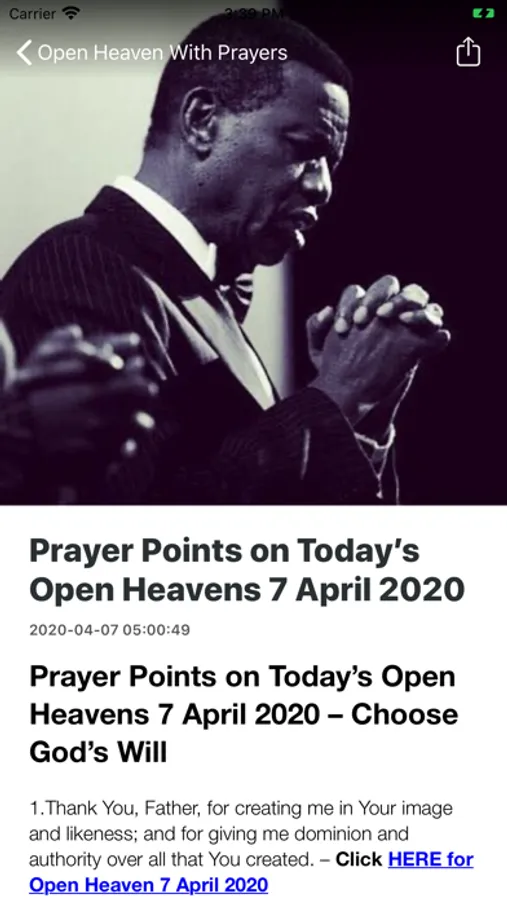 This App gives you on the go daily messages from the number one daily devotional open heavens and others and also gives you Daily Prayer points and Declarations from Adeboye. You also Get to have and see Adeboye Daily ministry activities