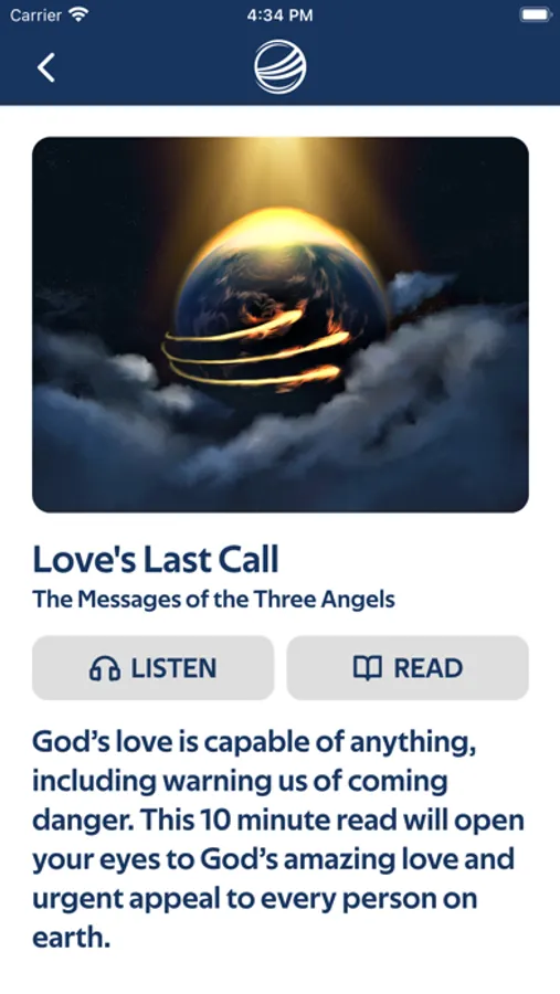 This free app contains audio narration and e-books for three significant titles (Including the book "The Great Controversy") which we hope will be a blessing to you in our current times. We recommend beginning with the shorter length "Love's Last Call," before moving onto the next two titles.