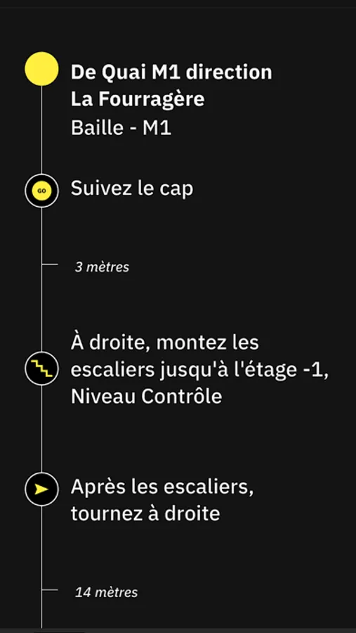 Le guidage dans le métro est rendu possible grâce à un réseau de balises bluetooth qui permettent une localisation avec une précision de plus ou moins 2 mètres. Pour cela, autorisez l'utilisation du bluetooth et de votre position par l'application
